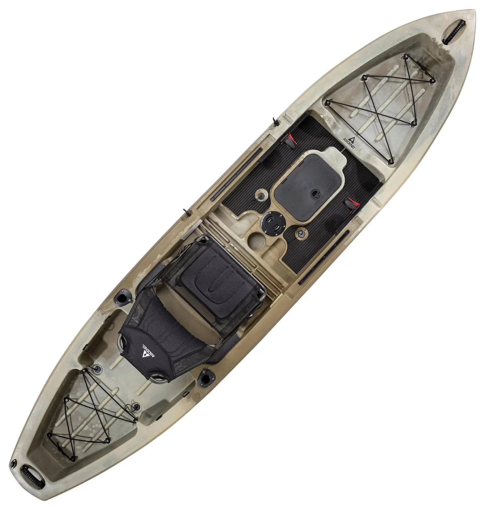 To craft the updated Ascend® 12T Sit-On-Top Kayak, our designers took our most popular sit-on-top kayak and refined it to be even more stable, more functional, and more comfortable. The advanced tunnel design with a wide transom and flared bow sections bring a fishing kayak so stable, you can stand up and cast from it. The same design also produces outstanding tracking and couldn’t-be-easier paddling. While you’re standing, you’ll stay comfortable thanks to the non-skid foam deck mat. Port and starboard accessory-mounting rails and a recessed bow storage area with flush-mounted bungees allow endless accessorizing for true customization. Port flush-mounted paddle holders ensure easy-reach paddling, and the midship deep-molded drink holder/storage and watertight storage areas deliver reliable containment for your vital gear. Further improving this Kayak directly from customer feedback, our designers improved durability in the dual flush-mounted rod holders with rod leash eyelets (leash not included); large stern tank well with D-rings; recessed stern storage area with flush-mounted bungees; 6 scupper drains with plugs; and the deluxe, adjustable seating system delivers more convenience and comfort than ever, and brings a removable design to go from the water to onshore in seconds. The Ascend 12T Kayak even works perfectly with the RedHead® waterfowl blind (not included), making this high-performance Ascend kayak the perfect option for duck hunting in addition to all your angling and adventuring demands. There’s simply no kayak better than an Ascend. 12’L x 31″W. Weight: 77 lbs. Max Wt. Cap.: 350 lbs. Made in USA.