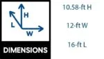 - Assembled dimensions: 144 in. W x 192 in. D x 127 in. H