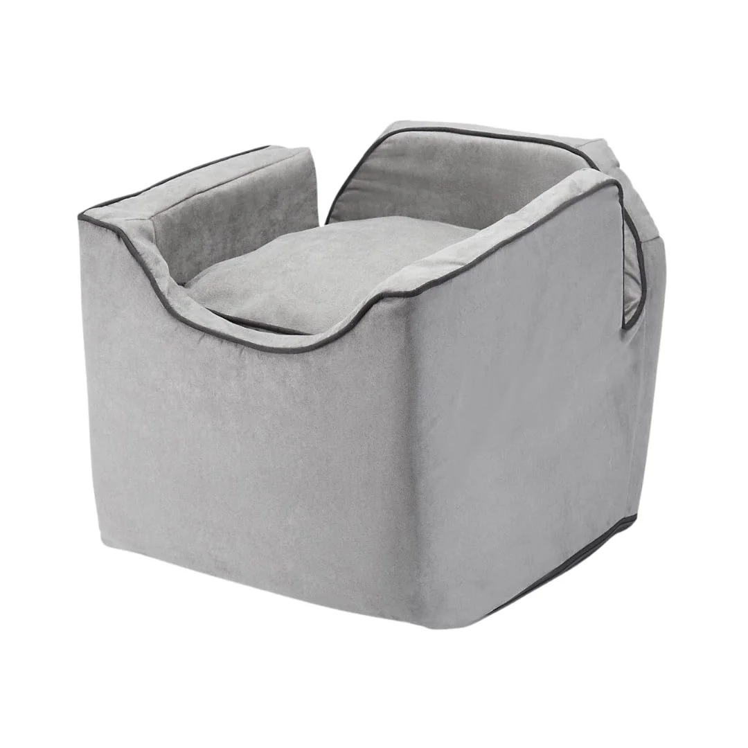 Treat your furry travel companion to first-class comfort with the Deluxe Grey Plush Pet Car Booster Seat. Designed for small dogs and cats, this sleek and cozy travel seat combines contemporary style with thoughtful safety features, making every car ride relaxing and secure. Wrapped in ultra-soft grey microfiber with subtle black piping, it effortlessly complements any vehicle interior while providing a snug nest for your pet.