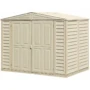 Perfect for most backyards, the DuraMate shed is maintenance-free. Constructed of durable all-weather vinyl in neutral ivory, it will never need painting or treating. It will not rust, dent, rot, mildew, or fade. It is also fire retardant and much quieter in the rain than metal sheds. The wall columns are reinforced with a solid metal structure, giving the shed a lot of strength and making it easy to hang shelves or garden tools. The DuraMate boasts 208 cubic feet of room, with double doors wide enough for equipment and high enough for tall people. It’s wind tested to withstand high wind and it can support up to 900 pounds of snow (or one large gorilla) on the roof.