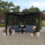What do you get when maintenance free design and shade meet privacy and flexibility? Cue the Glendale Cabana Pergola with patio seating by Backyard Discovery! Constructed from 100% galvanized steel, the Glendale cabana pergola includes built-in steel seating with 4 color options of market leading Sunbrella cushions, as well as an integrated side table, durable composite panels and soft canopy for privacy and shade. Intended to wow, the unique architecture of the Glendale will beautify any location with its functionality. Whether it be pool or lakeside, fire pit or garden, or even your main patio sectional; the possibilities are endless with the high-performance Glendale Steel Cabana Pergola. Backyard Discovery’s steel product line uses 100% galvanized steel and stainless-steel hardware both powder-coated to fully protect against rust, corrosion and UV harm. Regardless if it’s worry free comfort, relaxation or entertaining that you’re after, the Glendale Steel Cabana Pergola by Backyard Discovery has you covered!