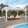 The Hawthorne Steel Pergola is Backyard Discovery’s state-of-the art addition to our patio collection, in a Contemporary White Finish. Our powder coated, galvanized steel construction makes the Hawthorne pergola maintenance free and rust resistant while offering protection against chipping, scratching, corrosion, and UV harm. You can be confident in the stability of the Hawthorne as it is a Pro-Tect® certified performance structure; certified to withstand up to 100 mph winds*. The Hawthorne Pergola preserves the classically inspired appearance of a traditional outdoor structure design with modern, durable steel composition. Included is a light filtering sail shade soft canopy. Backed by a 5-year limited warranty, our high-quality steel pergolas provide market leading strength and durability in comparison to aluminum or vinyl outdoor shade products. Offered in 4 sizes, the Hawthorne steel pergola provides up to 192 sq. ft. of shade and plenty of room for furniture, fire pits, and entertaining. The exclusive PowerPort™ has 3 USB ports and 3 electrical outlets to use for powering outdoor lights and electronics as well as charging your devices. If you have been searching for a strong, weather resistant, traditional styled pergola, look no further. Meet the Hawthorne Galvanized Steel Pergola by Backyard Discovery!
