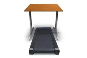 The compact treadmill fits under standing desks, making it easy to convert your standing desk into a treadmill desk.