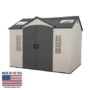 The 10-foot wide Sheds from Lifetime Products give you that extra space needed while accenting the beauty of your backyard. The centralized location of the doors provides easy storage access and the decorative shutters, molded wood-grain panels, and simulated shingled roof ensure an attractive design that will be the envy of your neighborhood.