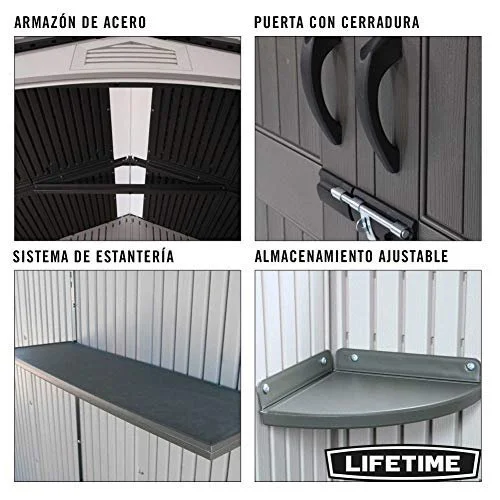 - Shed includes 2 shatter proof windows that open for increased ventilation and shelving system is customizable and steel reinforced for added strength