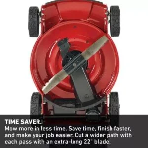 - Time Saver. Mow more in less time, Save time, finish faster, and make your job easier. Cut a wider path with each pass with an extra-long 22 in. blade.