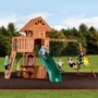 With all the charm of a forest cottage, the Woodland set has all the elements for a fairy-tale adventure. Between the upper clubhouse with 360° views, expansive sun porch, and octagon-shaped lower fort, there’s plenty of room for your kids’ imaginations to run free. They can climb up the 5’ high rock wall or ladder in search of safe reprieve from the wild jungle creatures, and then swiftly slide down when it’s all clear. They can swing alone on a belt-swing or together on the two-seated glider as if veering on vines from treetop to treetop. And they can serve pretend porridge to three little bears at the snack bar below. This set will find your family years of forest fun!